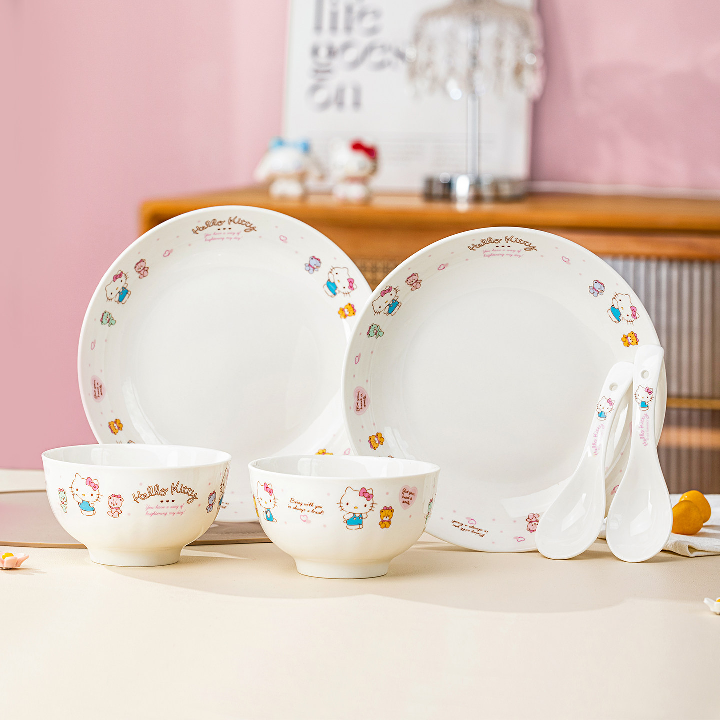 HelloKitty卡通陶瓷碗盘套装家用可爱餐具女生高颜值碗盘勺6件套