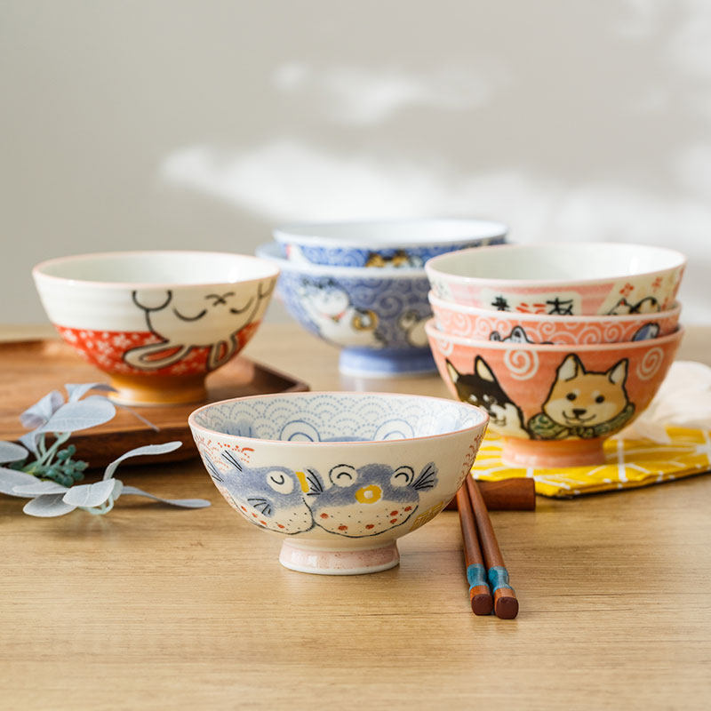 日本进口卡通陶瓷碗釉下彩亲子碗日式动物高脚碗汤碗面碗家用儿童