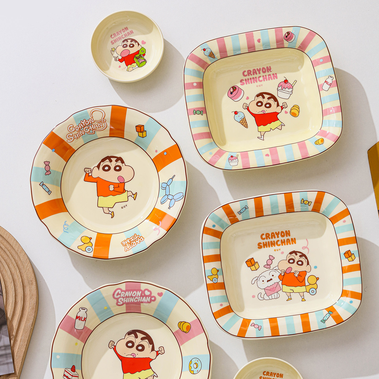 蜡笔小新正版卡通陶瓷碗米饭碗8英寸圆盘可爱家用餐具碗菜盘汤碗