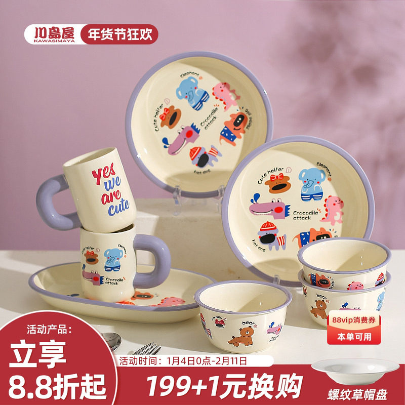 川岛屋可爱卡通陶瓷碗家用2025新款高颜值儿童米饭碗菜盘早餐盘子