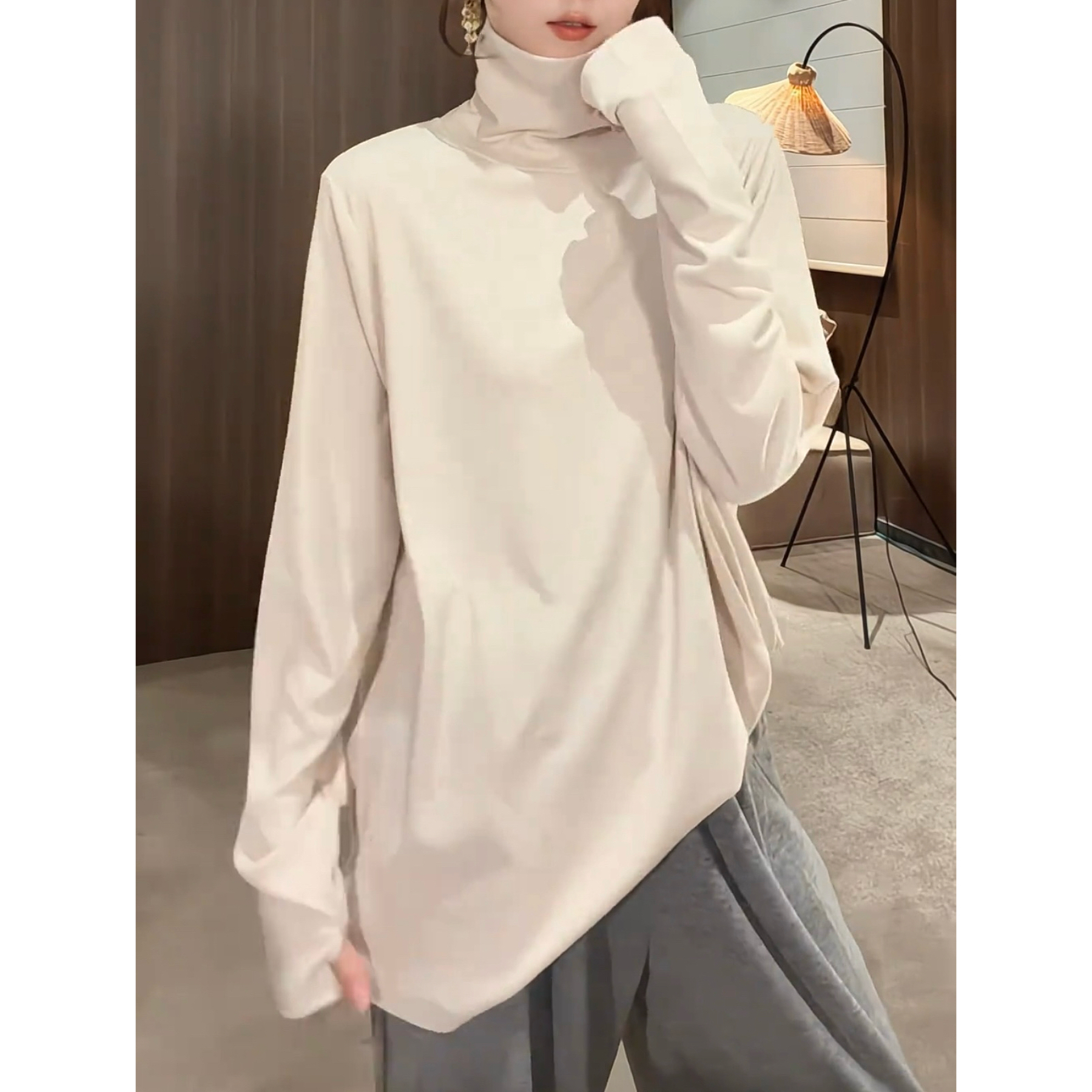 - Lin 撩人神器 百搭金丝小性感微透视上衣高领长袖修身打底衫女装