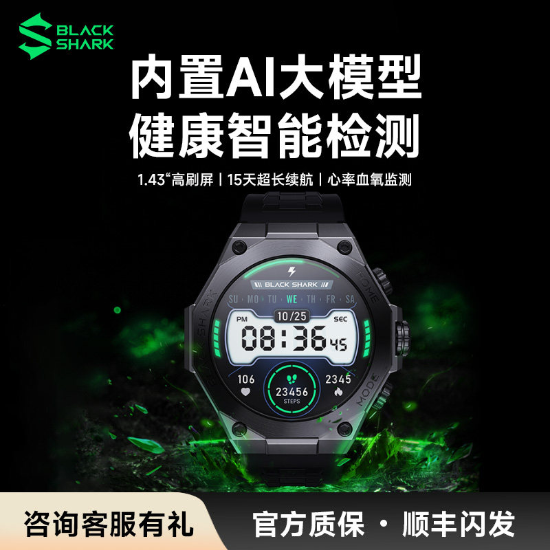黑鲨S1 pro新款智能手表可通话呵护健康测心率测血氧防尘防水长续航多功能时尚造型户外跑步运动手表