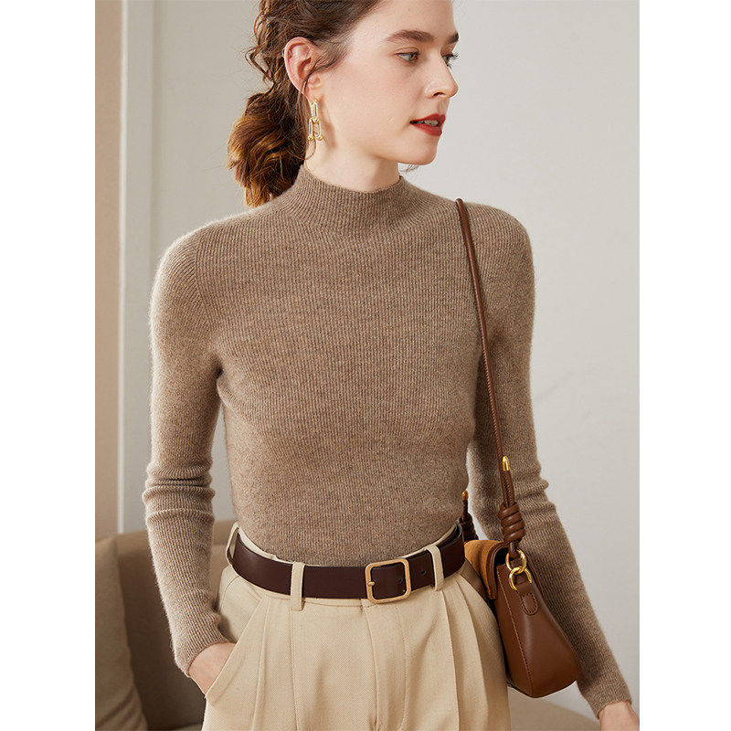 无缝超值走量款_树莓粉羊毛混纺半高领针织修身打底衫秋冬毛衣女
