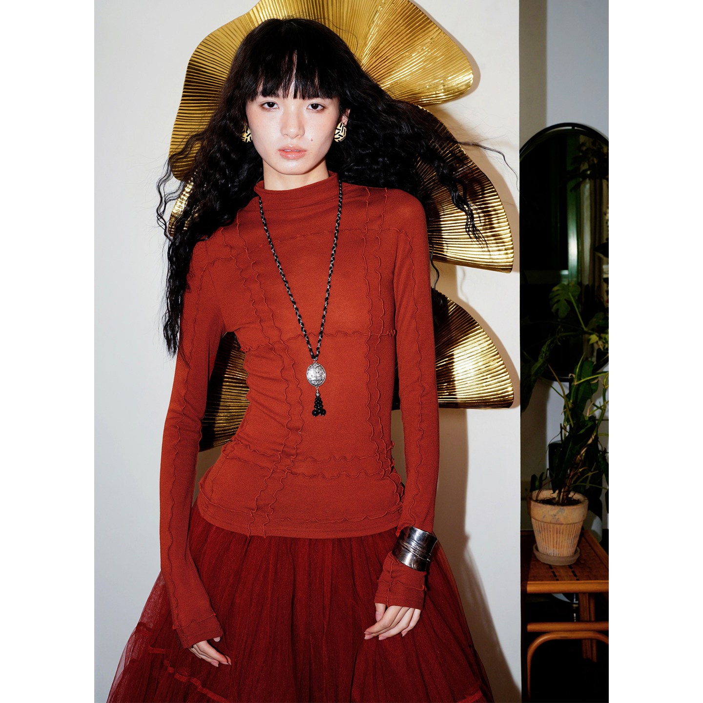 画风家drawwind半高领打底衫女2025秋季中领修身长袖内搭针织衫