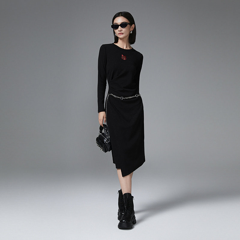 黑色步步生莲鱼尾裙秋冬季大衣内搭连衣裙内搭针织修身打底长裙子