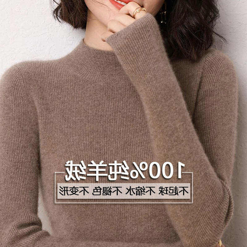 半高领100%纯羊毛衫女内搭秋冬款显瘦宽松毛衣百搭针织修身打底衫