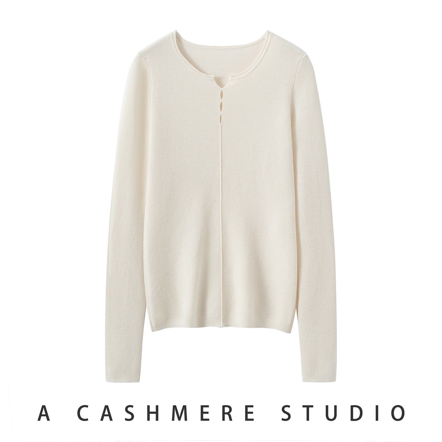 殳十原创设计 圆领针织打底衫长袖软糯春秋冬修身纯色毛衣套头女