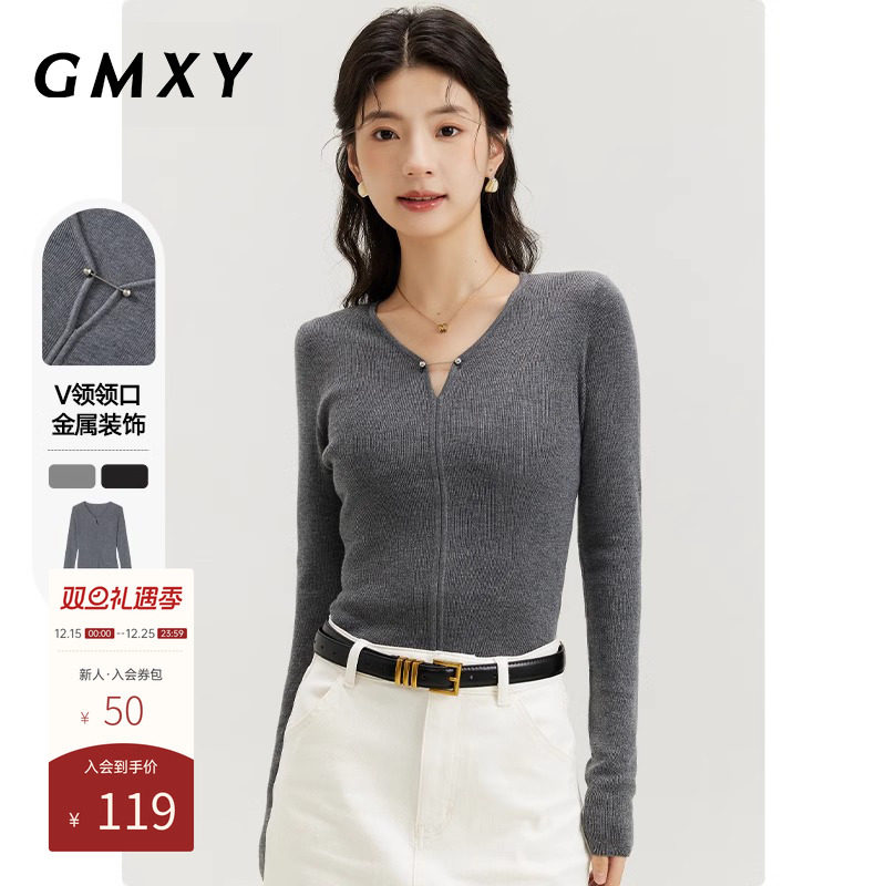 古木夕羊2024冬新款针织修身打底衫女V领修身显瘦气质毛衫上衣女