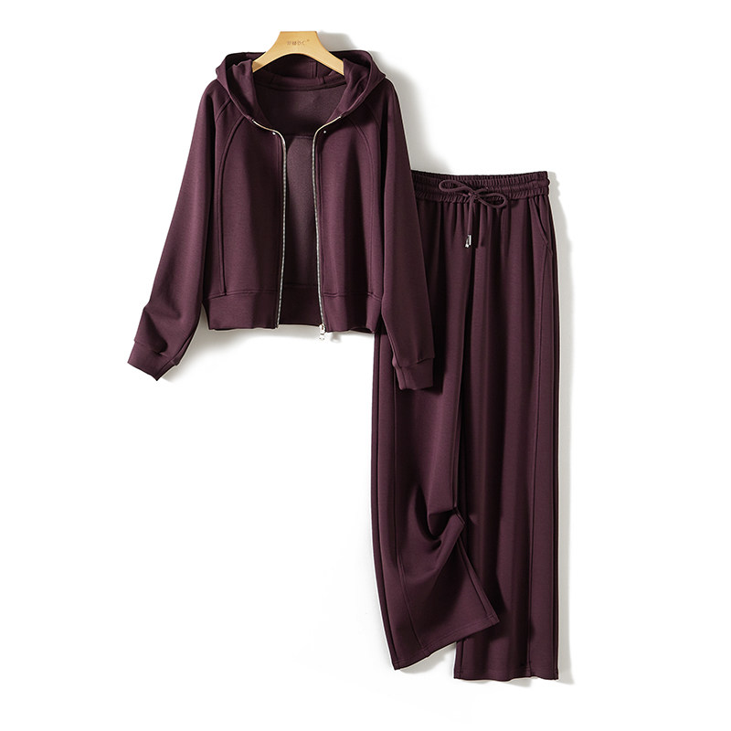 韩国红色连帽拉链休闲运动套装女宽松显瘦丝绵卫衣跑步服两件套秋