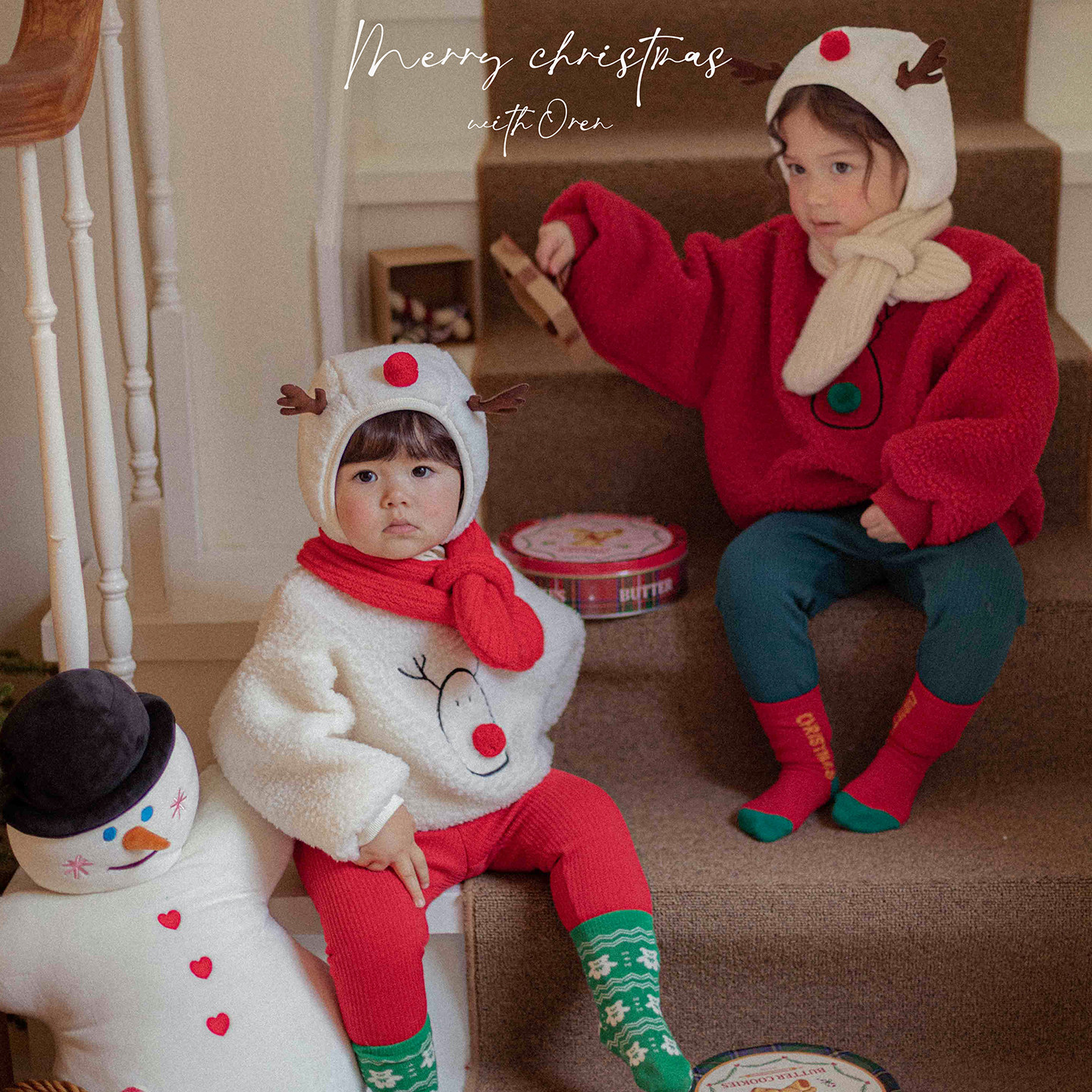 韩国进口儿童圣诞麋鹿抓绒卫衣25冬男女宝宝可爱红色宽松毛毛上衣