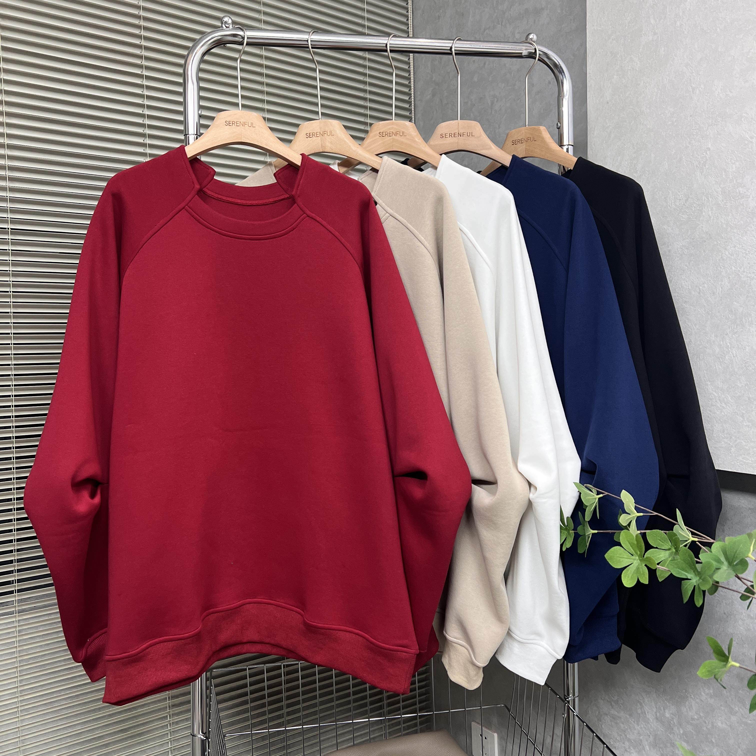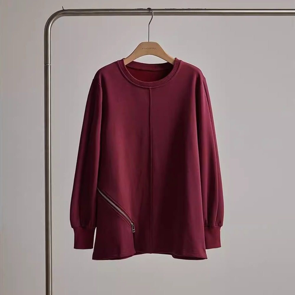 韩国红色高街圆领卫衣女早秋款不规则设计感插肩袖休闲宽松上衣潮
