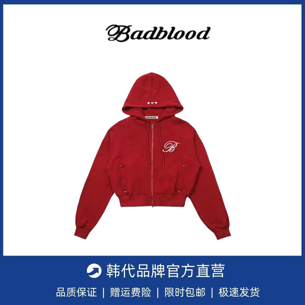 【现货】韩国badblood美式卫衣女刺绣连帽衫红色小众宽松休闲外套