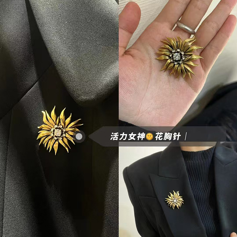 职业阿玛施特太阳花胸针高档女气质奢华镶钻胸花别针西装外套配饰