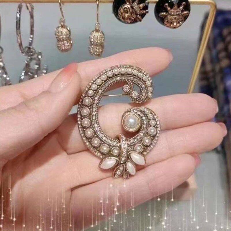 季阿玛施新颖2023新款字母胸针珍珠胸花时尚百搭镶钻别针首配饰品