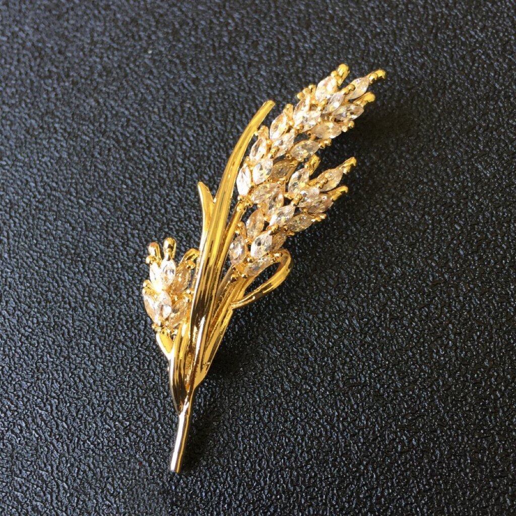 职业阿玛施特新款轻胸针女麦穗铜饰品高档锆石微镶配饰小香风胸花