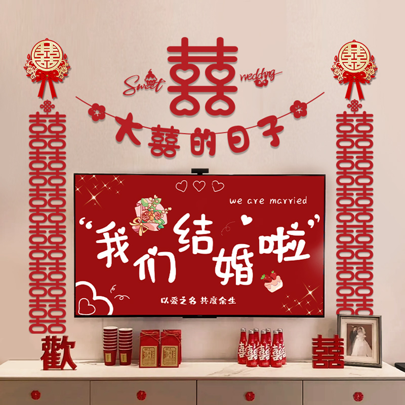 我们结婚啦墙贴3d立体婚房卧室贴纸画客厅电视机沙发背景墙面装饰
