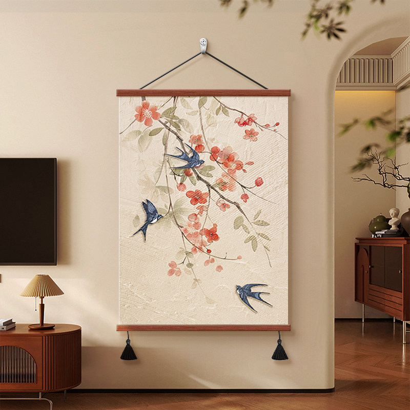 新中式燕子报喜客厅电视背景墙装饰画禅意茶室书房挂画卧室餐厅画
