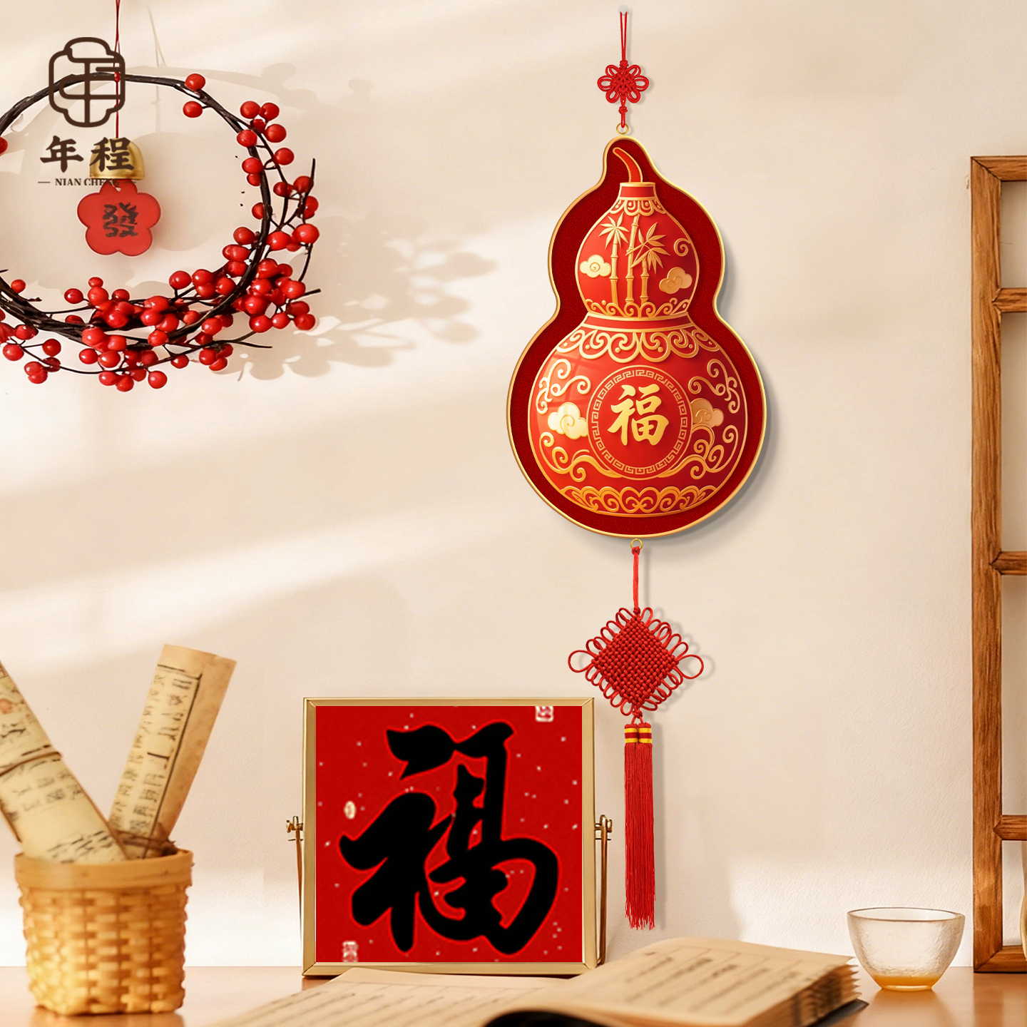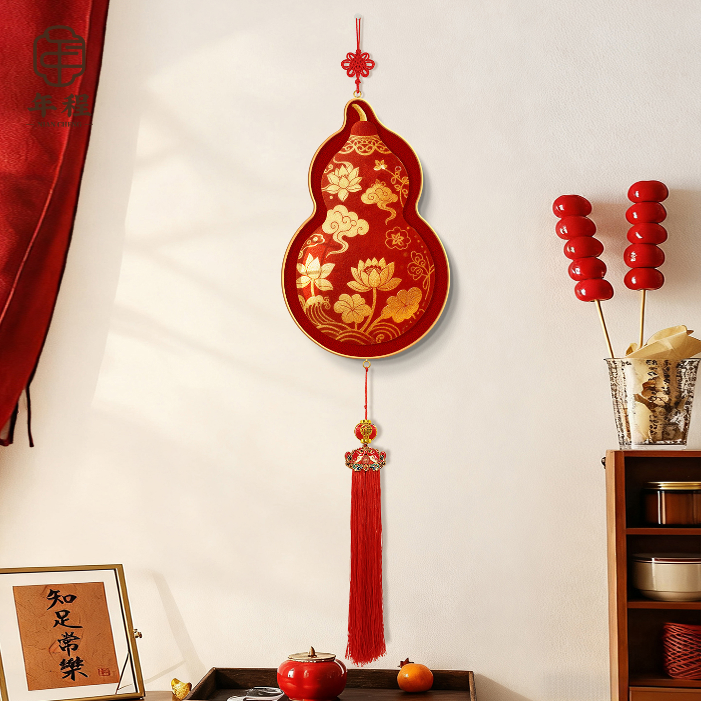 葫芦圆形挂饰中国结客厅电视背景墙装饰画新中式福字挂画餐厅水晶