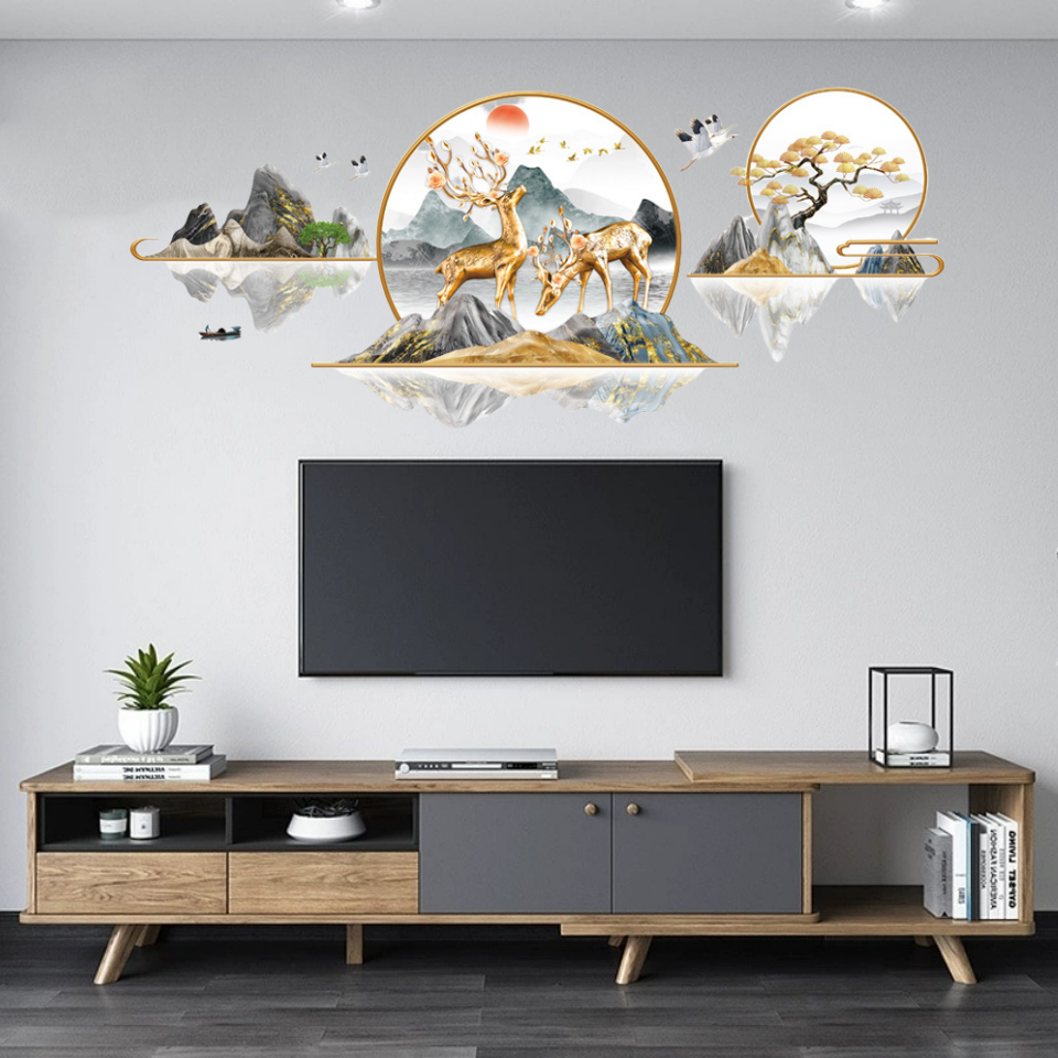 客厅电视背景墙装饰画贴纸自粘立体卧室床头墙上面贴画中国风墙贴
