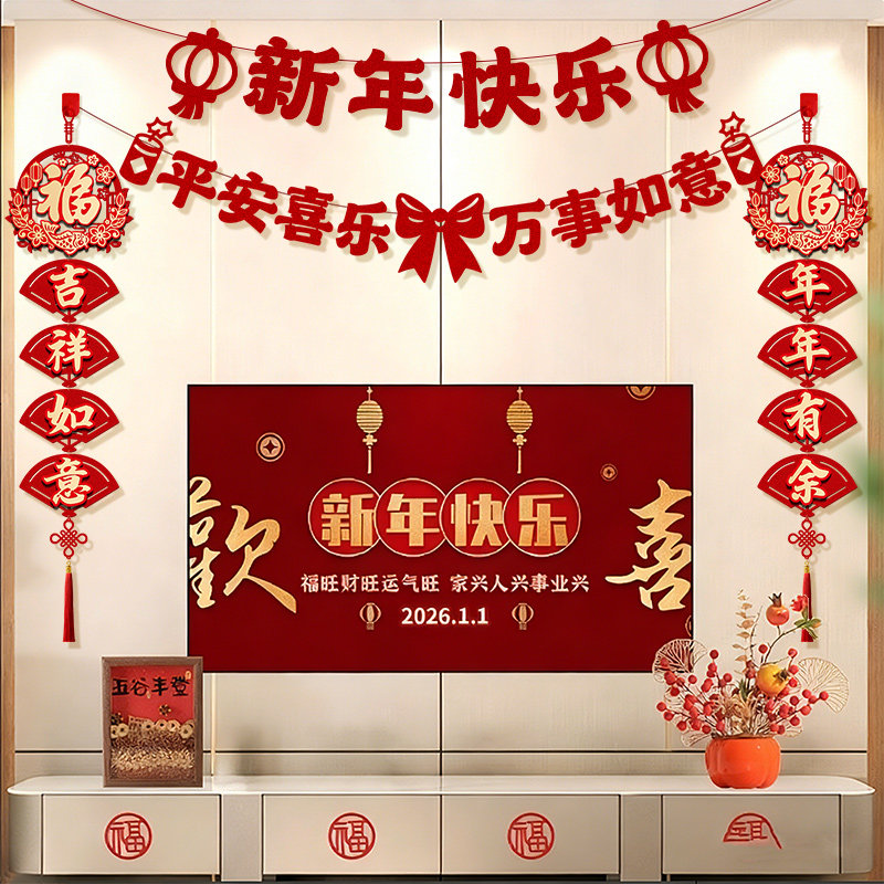 【下单立减50】2026新年客厅电视背景墙装饰福字拉花马年布置XD