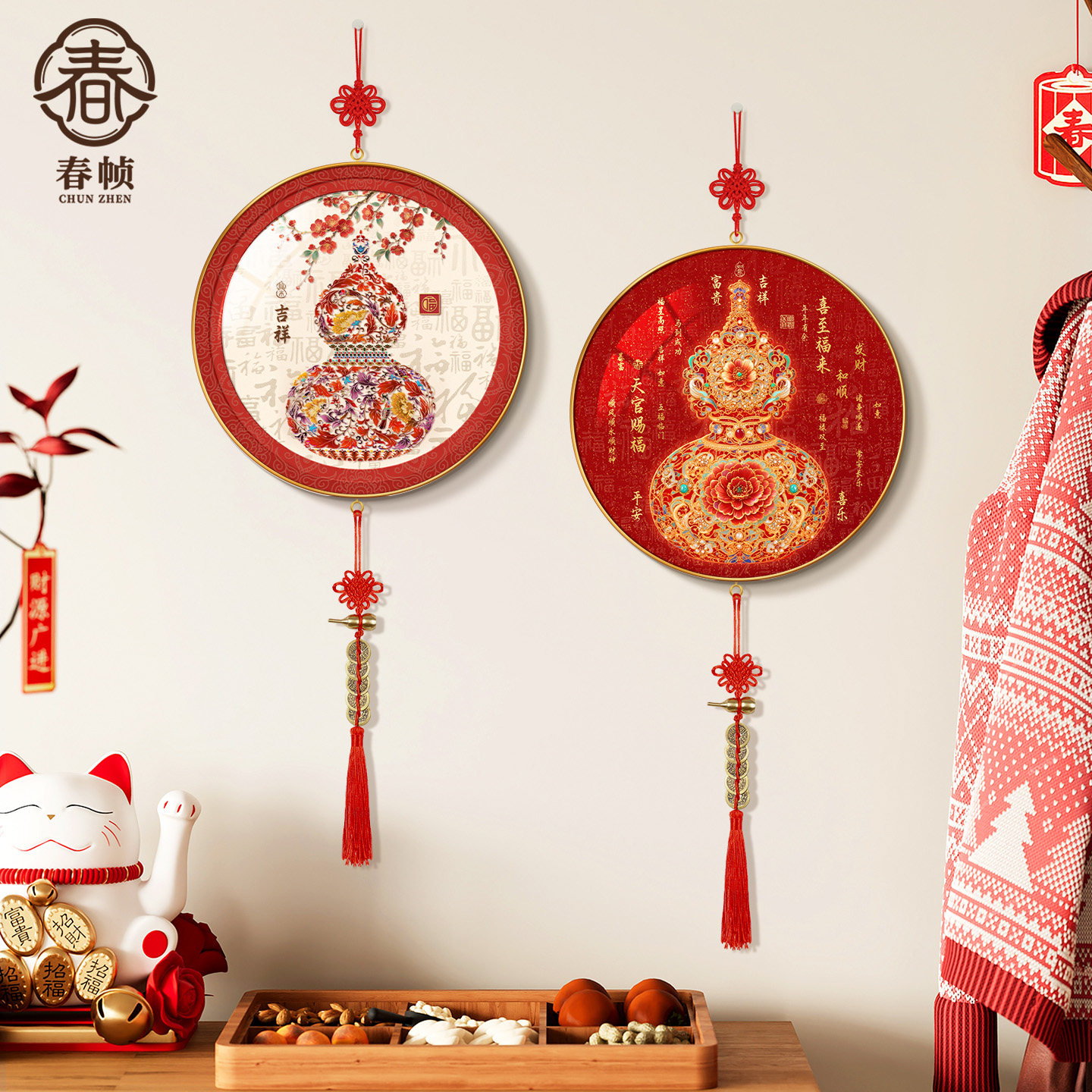 新年挂饰葫芦挂件平安中国结挂件乔迁新中式客厅电视背景墙装饰画