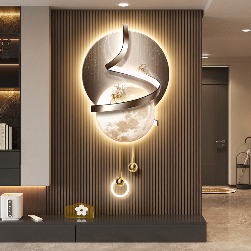 月球轻奢客厅电视背景墙装饰画高级感入户门玄关挂画餐厅led壁灯