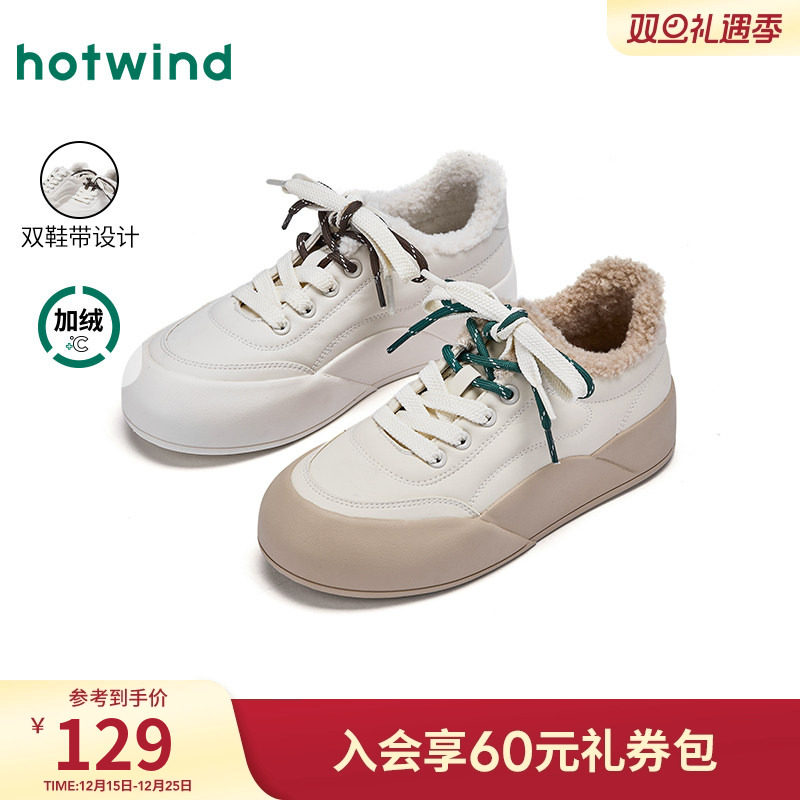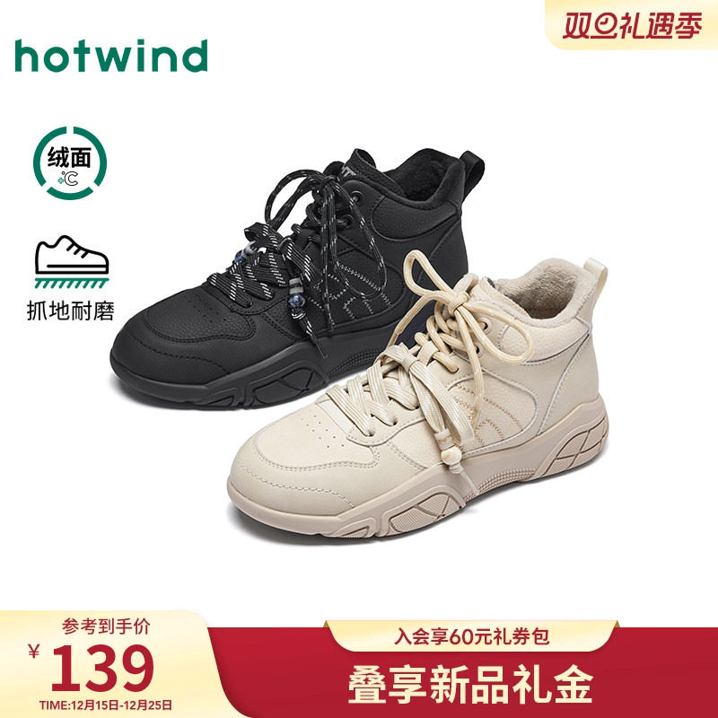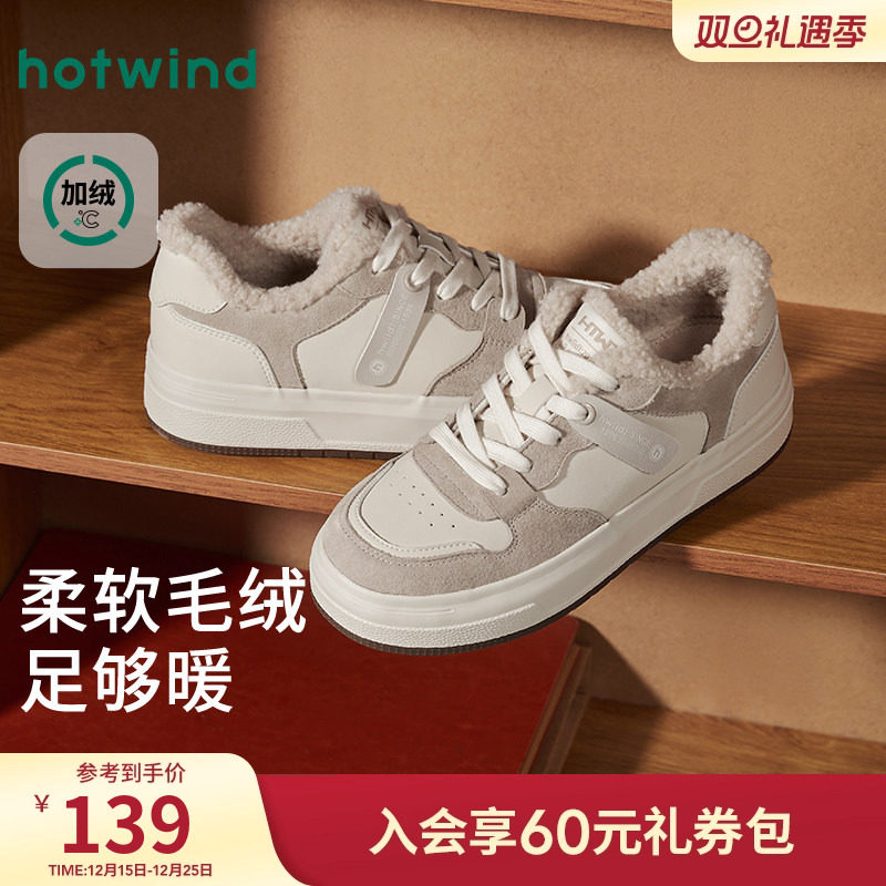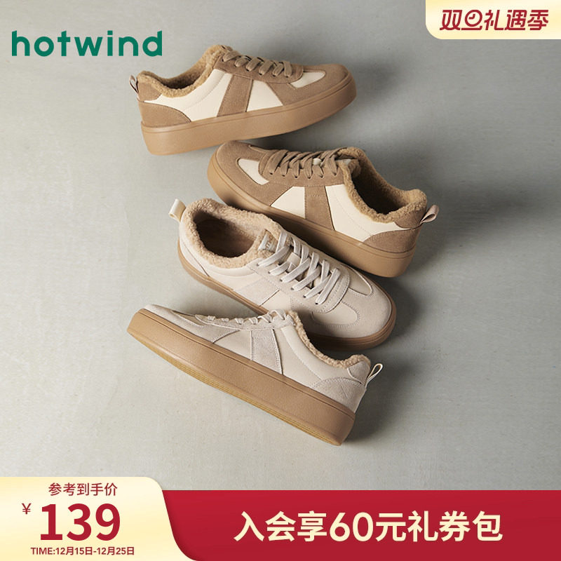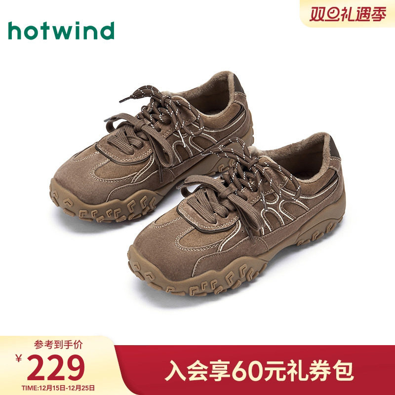 热风运动休闲鞋女2025年冬季新款百搭棉鞋厚底鞋子小个子户外女鞋