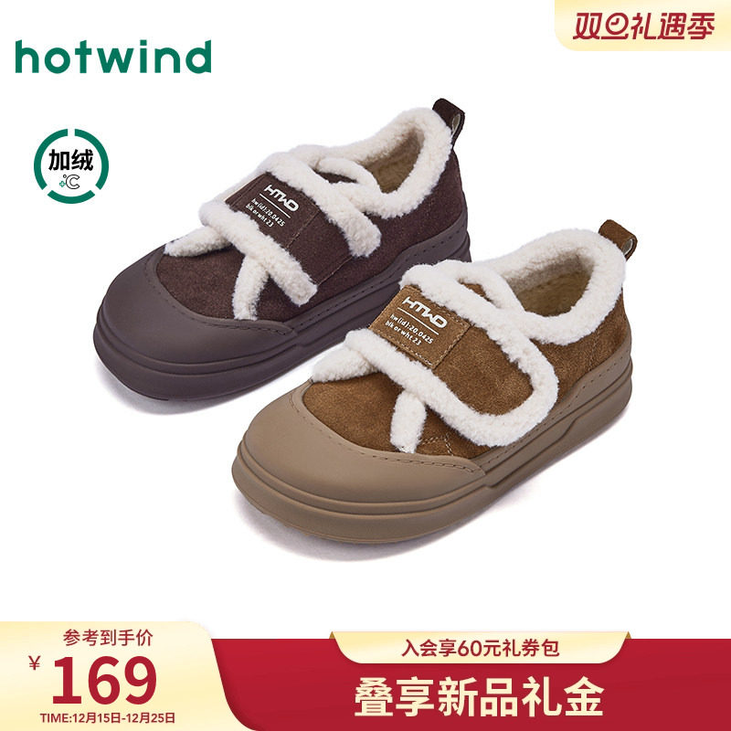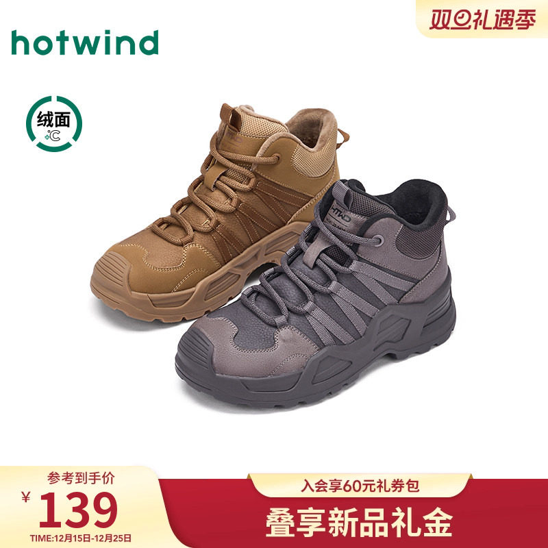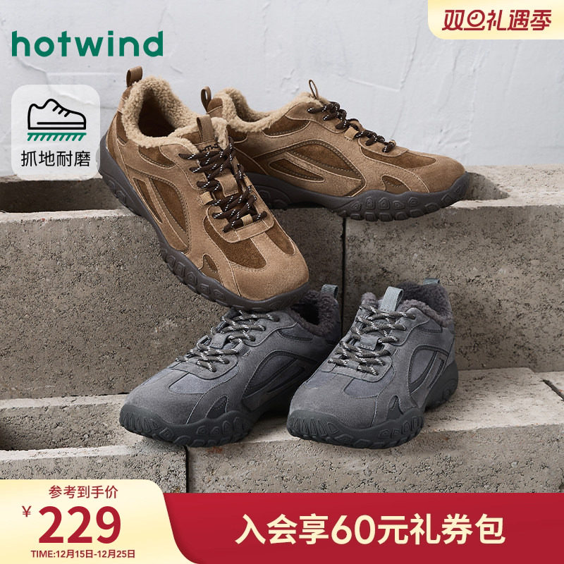 热风男鞋2025年冬季新款男士加绒运动休闲鞋棕色保暖百搭户外鞋子
