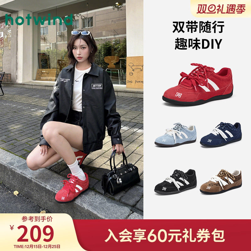 热风德训鞋女2025年冬季新款爆款运动休闲鞋薄底赛车鞋红色鞋子