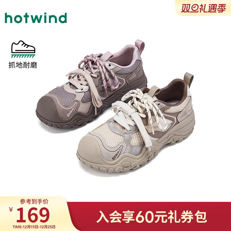 热风运动休闲鞋女2025年冬季新款户外登山鞋子百搭溯溪女鞋老爹鞋