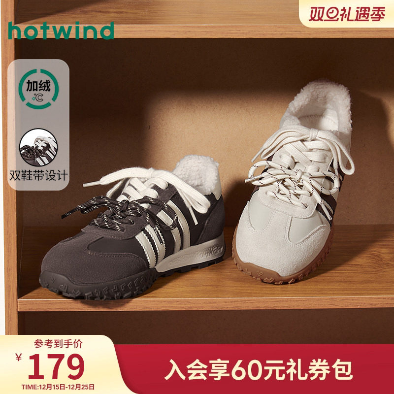 热风户外运动休闲鞋女2025年冬季新款百搭慢跑鞋子复古德训鞋女鞋