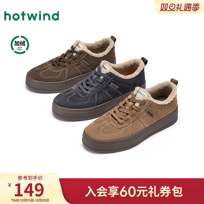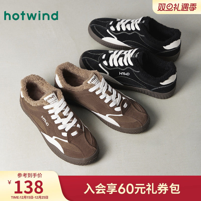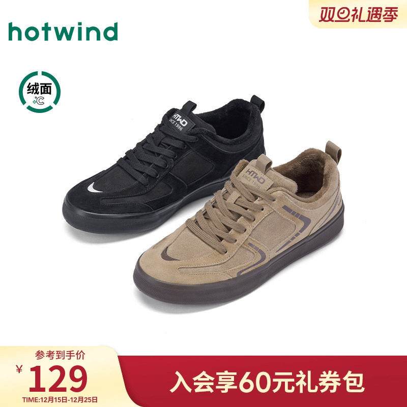 热风男鞋2025年冬季新款男士时尚休闲鞋保暖加绒舒适百搭板鞋子