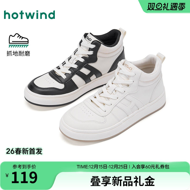 热风高帮小白鞋女鞋2026年春季新款运动休闲鞋百搭板鞋简约面包鞋