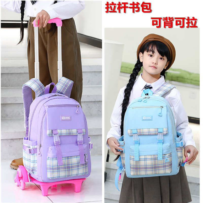 精工新款拉杆书包小学生书包女带轮双肩包儿童拉杆推车拉杆包书包