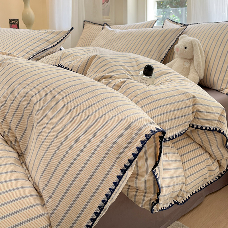 ins风被套200x230cm水洗双层纱被罩床单宿舍双人床笠罩被单四件套