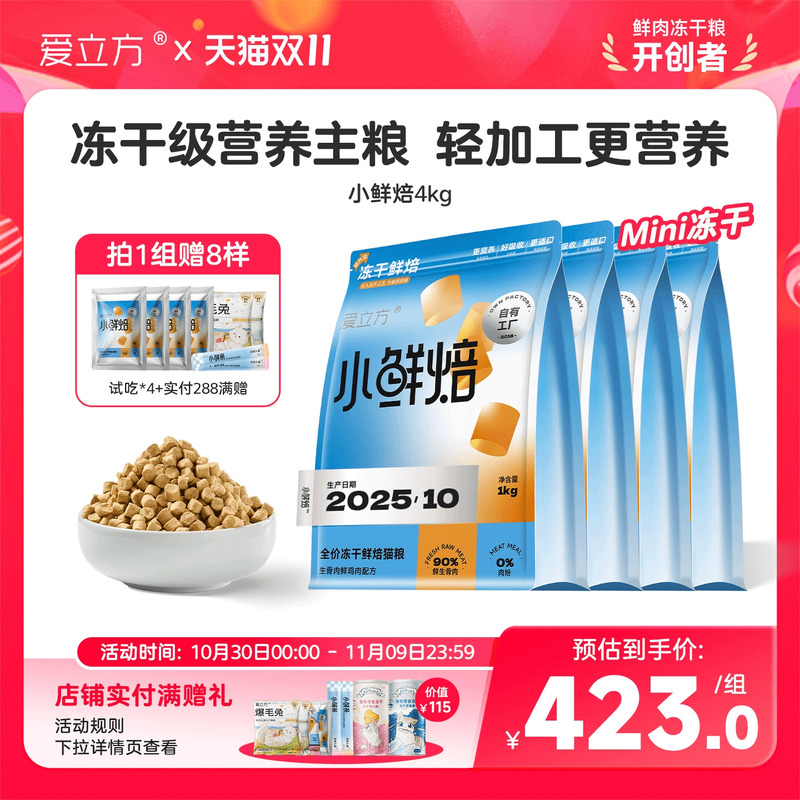 【MINI冻干】爱立方小鲜焙冻干鲜粮烘焙低温无谷粮成幼猫主粮4kg