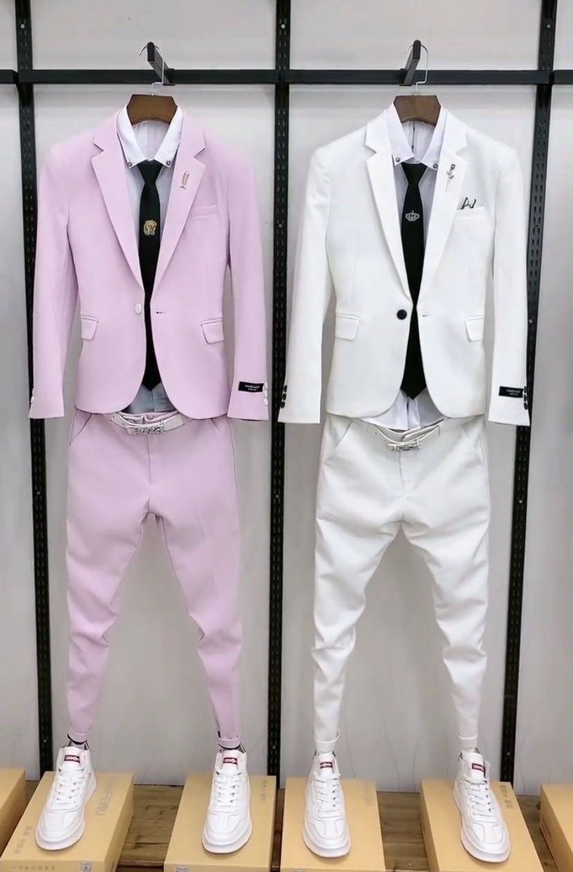 夜店小西服男抖音快手红人同款西装婚礼伴郎发型师韩版修身套装潮