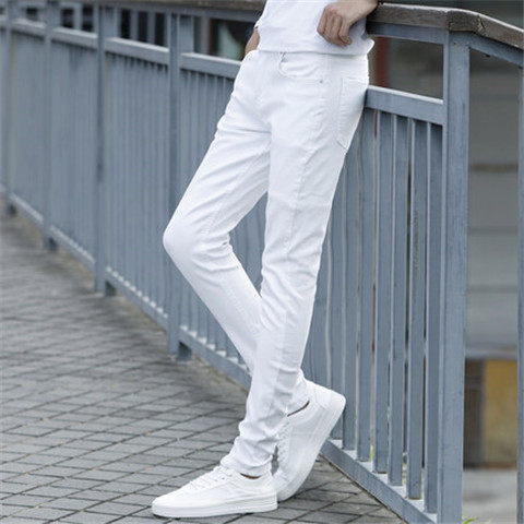 快手红人巴扎黑同款修身简单白色牛仔休闲裤社会小伙紧身小脚裤男