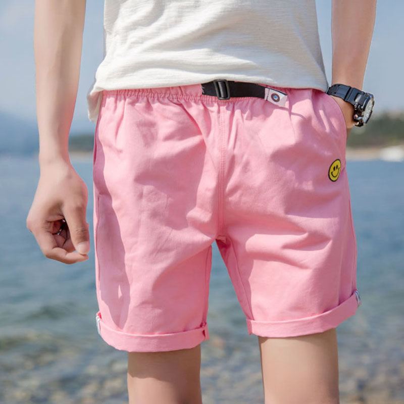 快手红人同款男士短裤3分4分裤社会精神小伙s码粉色沙滩裤修身潮