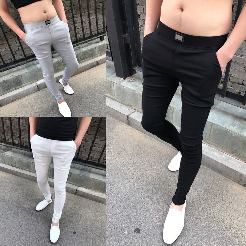 快手红人同款休闲裤男夏季薄款修身显瘦小脚社会精神小伙紧身男裤