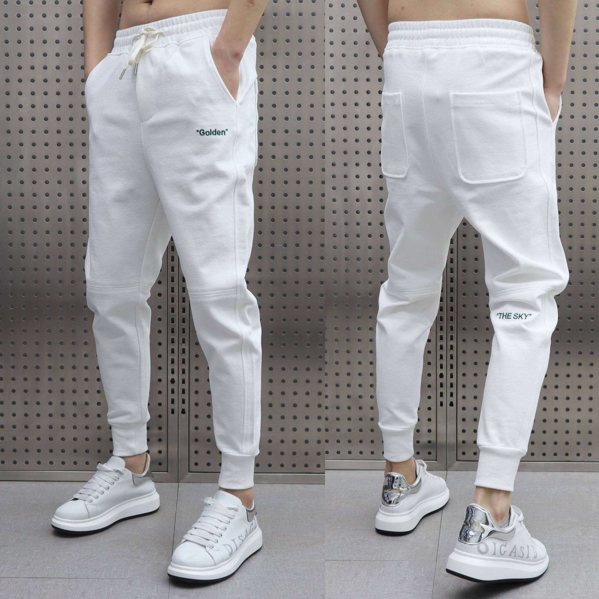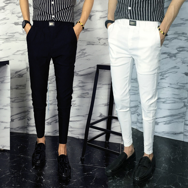 快手红人同款休闲裤社会人精神小伙白色裤子男修身显瘦小脚九分裤