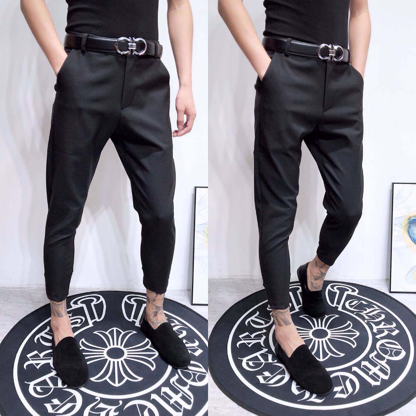 快手红人同款男休闲裤弹力紧身显瘦社会小伙裤子九分小脚修身潮流