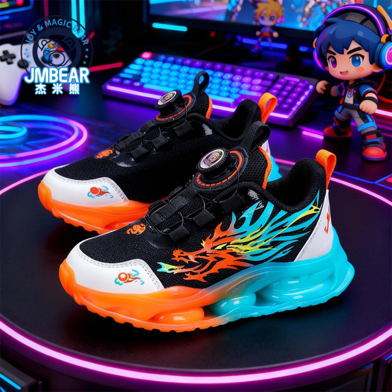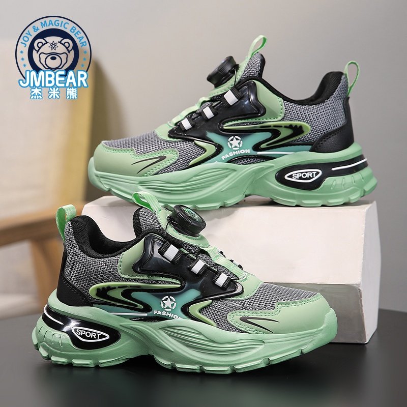 杰米熊B531092春秋款网面透气旋纽扣跑步运动鞋31-37码
