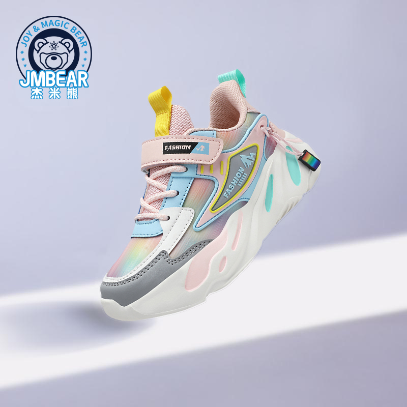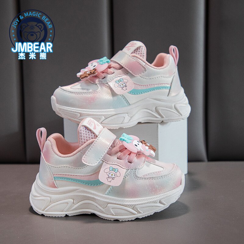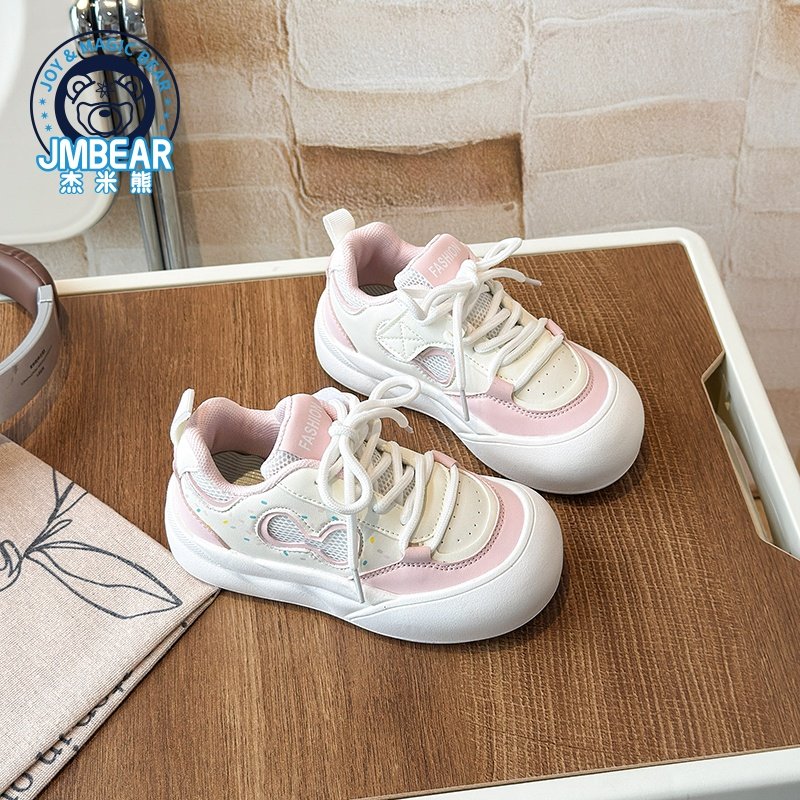 杰米熊女童鞋子2025春秋新款儿童革面运动鞋女孩软底跑步鞋老爹鞋