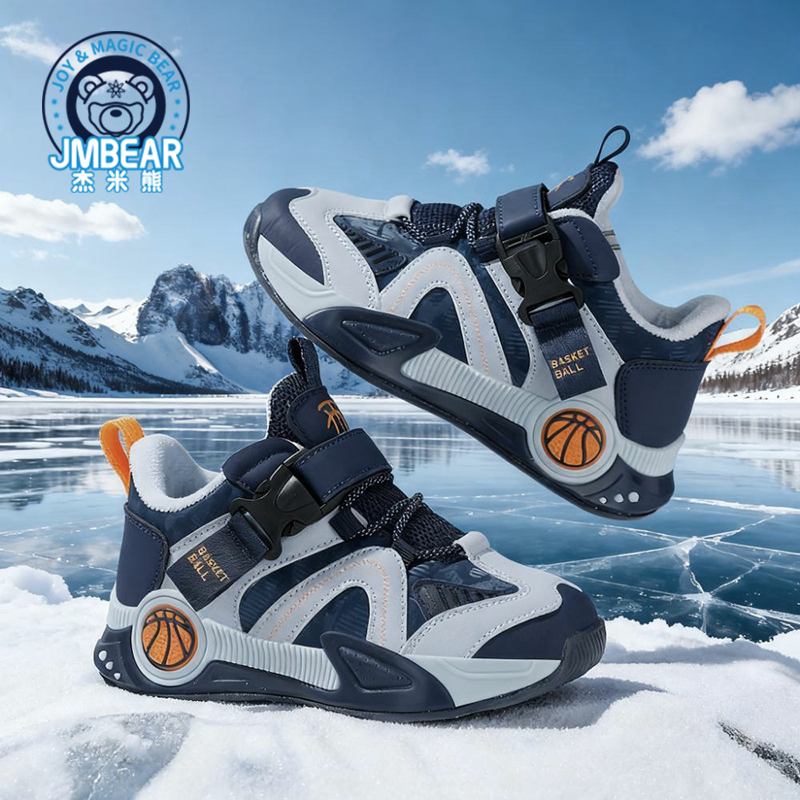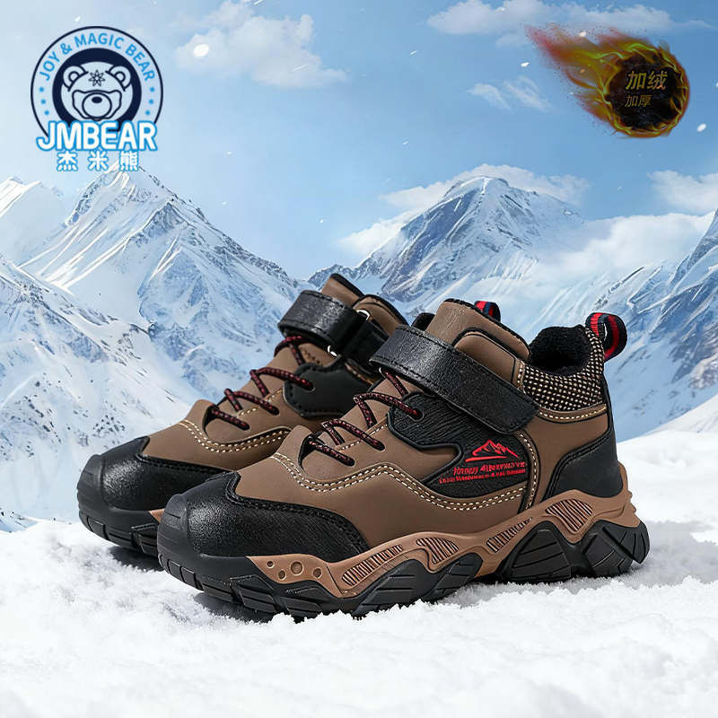 杰米熊童鞋2025冬季新款加厚儿童保暖防水运动鞋男童魔术贴休闲鞋