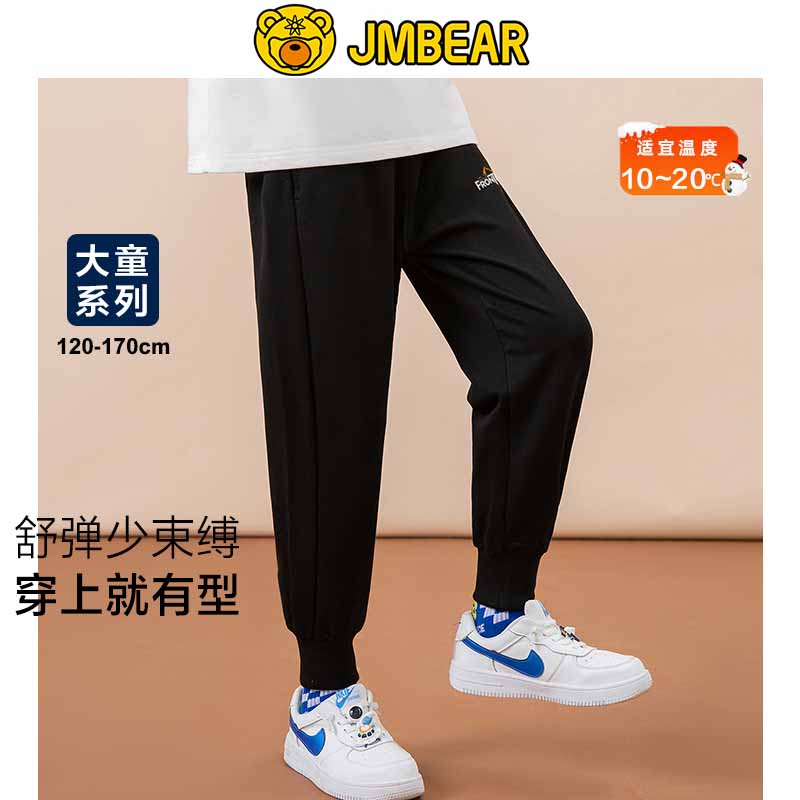 JMBEAR杰米熊中大童裤子春季新品纯色简约风男童运动休闲束脚卫裤