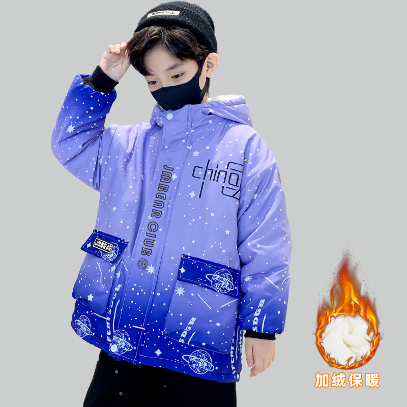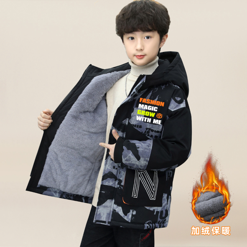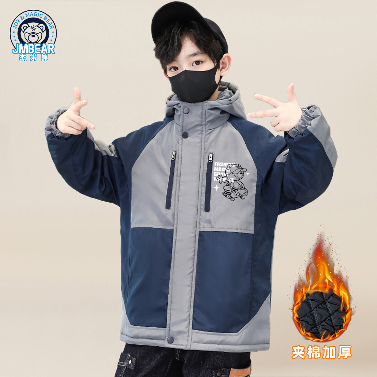 杰米熊童装2025冬季新款加绒加厚百搭时尚男童冬款保暖防风外套