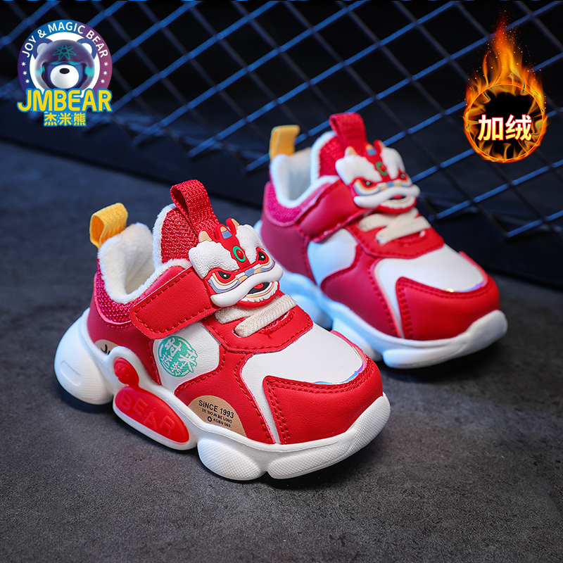 杰米熊童鞋学步鞋24冬季新款红色男女童过年鞋加绒宝宝软底机能鞋