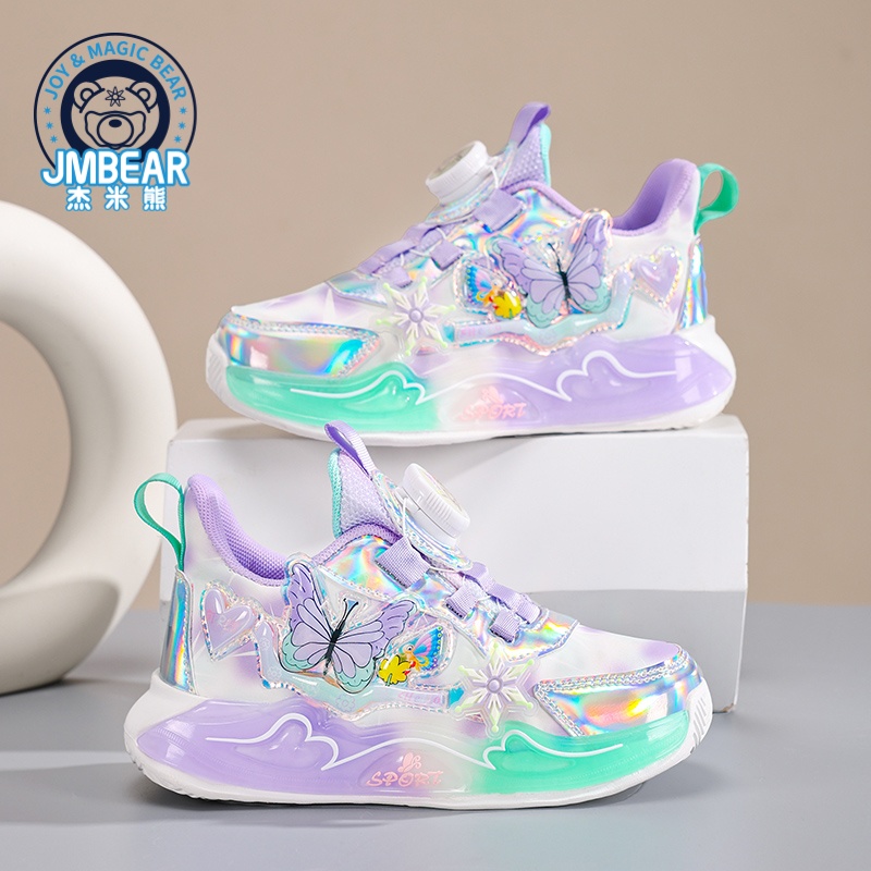 杰米熊童鞋2025秋季新款时尚女童运动鞋休闲透气旋转扣跑步鞋耐磨