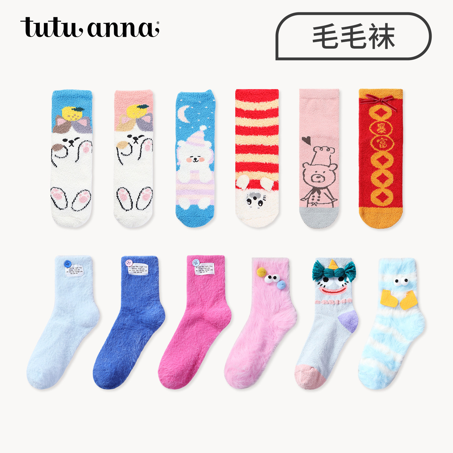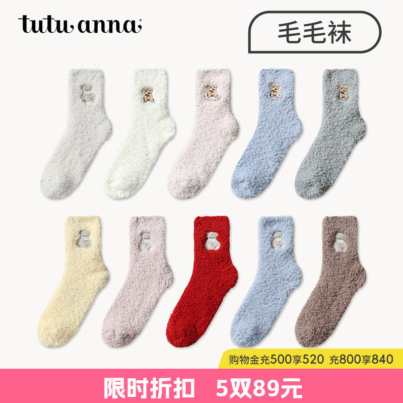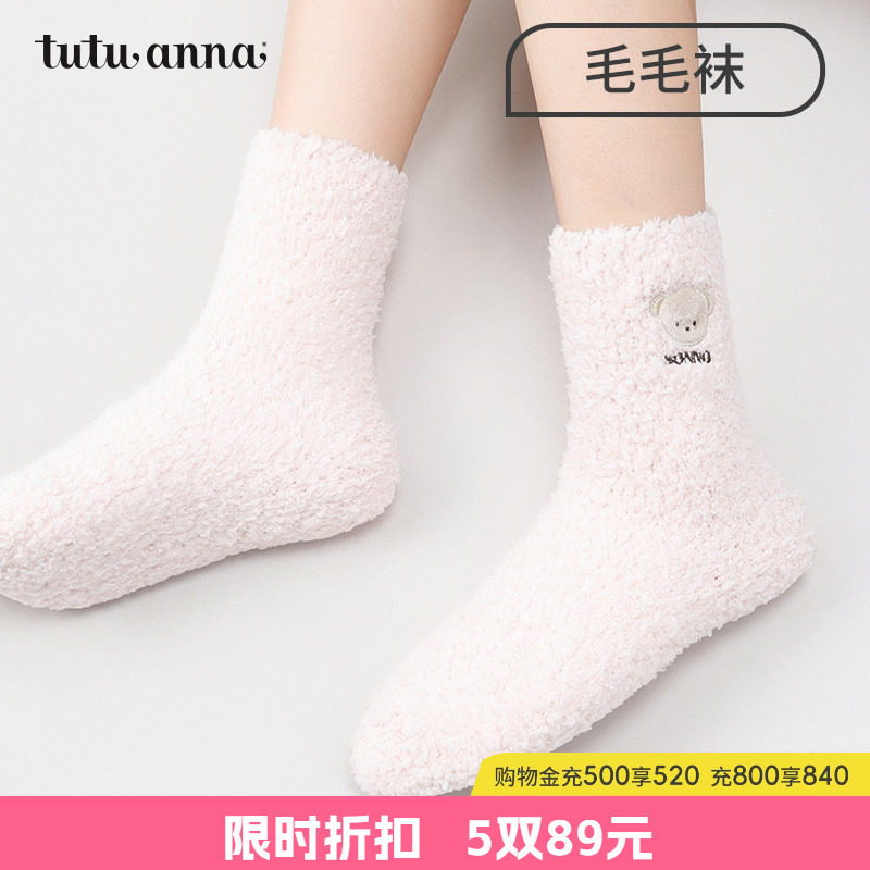 tutu家anna地板袜卡通加厚毛毛保暖少女可爱jk珊瑚绒袜子孕妇月子